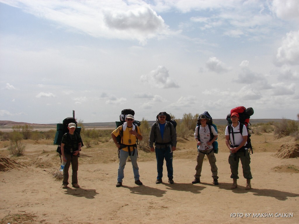 Нам предстояло преодолеть в этот день довольно большой участок пути на машине, так как все мы живем в Ташкенте, а до пустыни ехать нам потребовалось около 500 км. Начиналось наше путешествие в заброшенном поселке "Куламкак". Поселок был, когда то брошен жителями, так как там просто на просто не было воды. Когда-то в советское время поселок снабжали водой, но потом это прекратилось, и жители были вынуждены перебираться в более оживленные районы. Вот мы приехали, разбили свой лагерь на такыре рядом с этим поселком, в самом селении не стали этого делать из за опасности быть покусанными разными насекомыми, которые поселились в брошенных домах , и питающихся остатками от жизнедеятельности людей в этом месте. И так, приехали мы в поселок, разбили лагерь, я занялся ужином. Первый ужин был классным, ведь за сегодняшний день мы не прошли ни одного километра еще, мы приехали и просто сгрузили все вещи с машины. Как много вещей мы с собой взяли мы это узнали только утром. После ужина и небольшого праздника в честь начала экспедиции, Гена решил проверить могу ли я ориентироваться по звездам. Водил меня среди барханов и кустов, после не продолжительного хождения вокруг лагеря было предложено найти дорогу обратно. Пришлось выкручиваться и вспоминать уроки астрономии, в тот момент, конечно, они не помогли, так как я точно знал, где наш лагерь, но поумничать пришлось. Я даже вспомнил движения по азимуту, был когда-то разведчиком в игре "Зарница". После скитаний мы вернулись в лагерь, допили остатки праздника, так как стеклянные бутылки мы уж точно не собирались брать с собой.