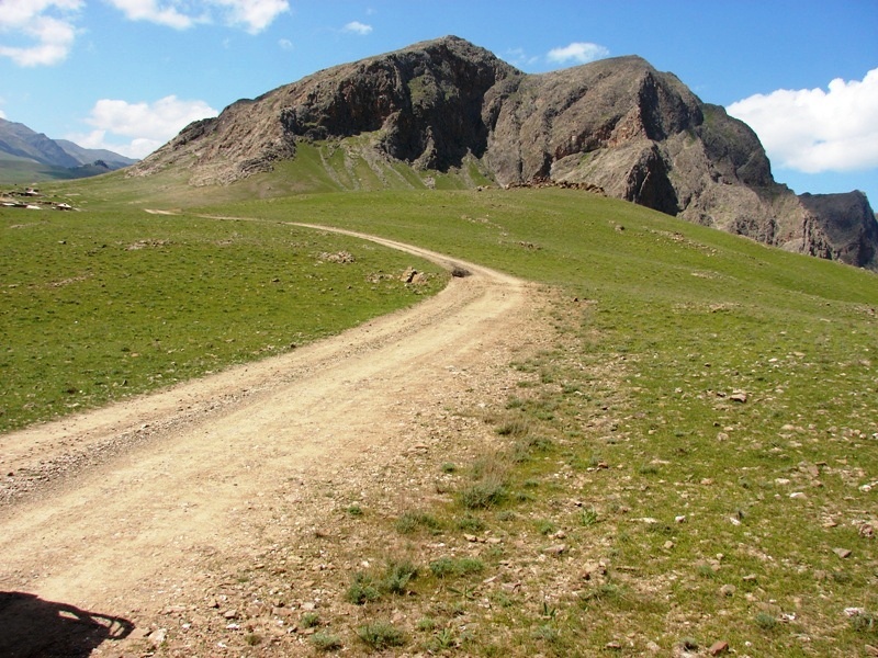 Завтрак. Сборы. На чистой машине, так как вчера ее вычистил Олег, выезжаем в царство камней, довольно крутой подъем по грунтовке, приводит нас в удивительную долину выветренных валунов, напоминающих собой различные фигуры мистических существ. Далее попадается поселок, так же умело спрятанный между этих огромных валунов. Жители ловко расположили свои домики вокруг валунов, некоторые даже заменяют забетонированную площадку двора. Затем наш путь лежал вдоль поселков средневекового типа и русла реки Урганжисай, до поселка Сайкечар. Выехали на асфальт. И ринулись на разведку предгорной дороги от Кошрабада, вдоль хребта Актау. День близился к своему завершению, солнце красиво заиграло на верхушках гор, и постепенно набирало оранжевый цвет. Мы поняли, что пора где-то вставать уже лагерем, и направили наш корабль в сторону селения. Где под перевалом Лянгар , на очаровательной полянке разбили свой лагерь. Искали дрова, но ни где их не оказалось. Погреется у костра не удалось. Как обычно «поужинали», провели "брифинг". Легли спать. Уснули.