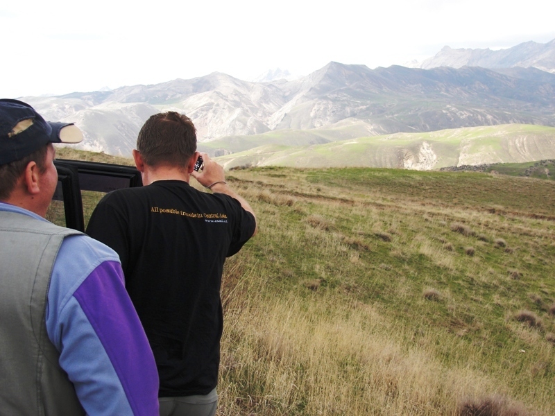Утро. Ничего нового, завтрак в открытом поле. Местные жители неспешно торопятся по своим делам. Приехал наш вчерашний знакомый агроном. Рассказывал, что виноград у них самый вкусный и кишмиш они делают лучше всех. Покушали, собрали лагерь и поехали исследовать ущелья. Сегодня нас ждал дождливый и слякотный день. Сегодня мы испытывали джип на прочность от грязи. Первое Ущелье, ничего интересного нам не показало, зато второе удивило своими красивыми местами, и святым местечком, которое было обозначено деревом с завязочками. Ущелья оказались не сквозными , тупиковые. Честно говоря, было бы интересно прогуляться до конца, и проверить есть ли возможность просто прокатить несколько километров велик с собой. Чтобы дальше выскочить в хорошие места. После того как прокатались по ущельям, выскочили дальше на наш трек. И покатили через поля к месту ночевки. Ночевка на привычном для нашего велотура месте, за поселком Акташ. Пейзаж до места ночевки, довольно скучноват, но вот как спустишься к стоянке, все представление о маршруте начинает меняться. Это как оазис в пустыне, журчат ручейки, более густая и зеленая растительность. В нескольких ста метрах расположились несколько домов. И у нас был случай, в одном из вело туров с Австрийцами. Тоже без улыбки не вспомнишь.