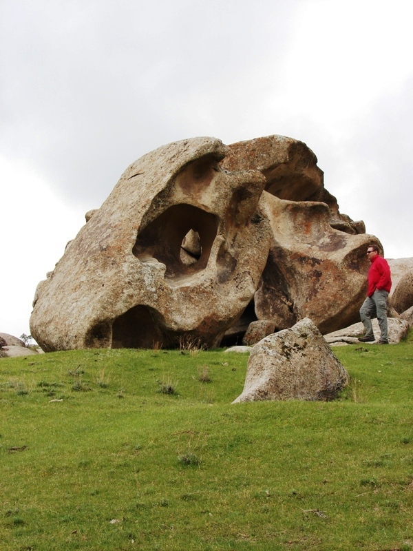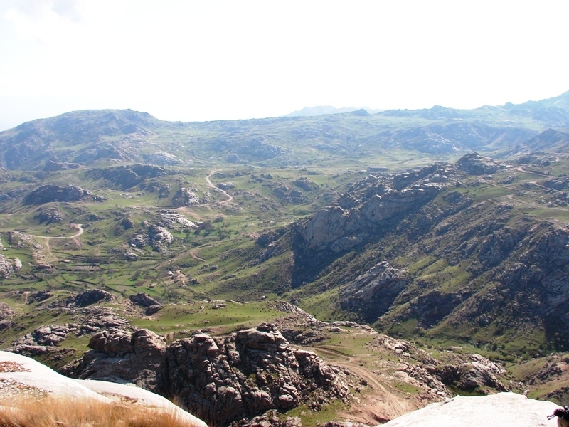 Завтрак. Долго не буду описывать, так как тут ничего сильно не меняется. Очень интересная дорога на Лянгар, очень живописное место на самом деле, огромные скалы, и извилистая дорога. Под самим перевалом, есть гора, на которой были обнаружены остатки древней крепости, и надпись на скале арабской письменностью. По легенде местных жителей, эту надпись оставил сам Аллах. Приходится полазить, чтоб забраться на эту гору, она больше на скалу похожа, если честно. Дальше, мы поехали не по привычному пути через Лянгар, а ушли по старой дороге, которая вела на рудники, она идет влево от перевала, вдоль хребта Актау. Пейзажи нам открылись просто супер фантастические, справа от нас лежали красивые ущелья и отроги Актау, слева от нас вид на долину с высоты птичьего полета. Дорога, просто идеально создана для катания на байке, отличный извилистый грунт, с довольно экстремальными перепадами высот. На пути поселки, по моему совершенно забытые временим, такое впечатление, что люди живут в своем мире. Дальше наш путь лежал в селение "Майдан". Но на нашем пути была еще одна задача, найти «качающийся камень» . После некоторых расспросов у местного населения, выяснилось, что есть такое чудо в поселке Сангиджума. Проложили трек по Гуглу, кстати , Джип нафаршировали кучей навигационных приборов, чтобы не заблудится. К вечеру мы все таки добрались до этого знаменитогокамня. Впечатление, честно говоря, такое, что он и вправду качается, но у нас не получилось его раскачать. Место очень интересное, я бы даже сказал какое-то космическое. Разбили лагерь на одном из огромных валунов, выступающих, на склоне. Выяснилось, что джип наш не выдержал таких испытаний, и что он требует ремонта, приняли решение возвратиться в Ташкент утром. Расстроились, так как не удалось посмотреть еще несколько намеченных точек. Поужинали легли спасть.
